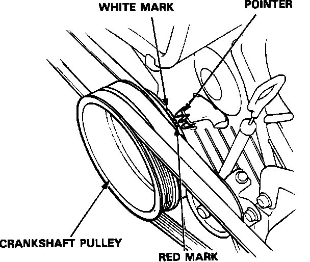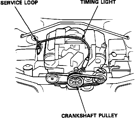 3. Connect a timing light to the service loop; while the engine idles, point the light toward the pointer on the timing belt cover.