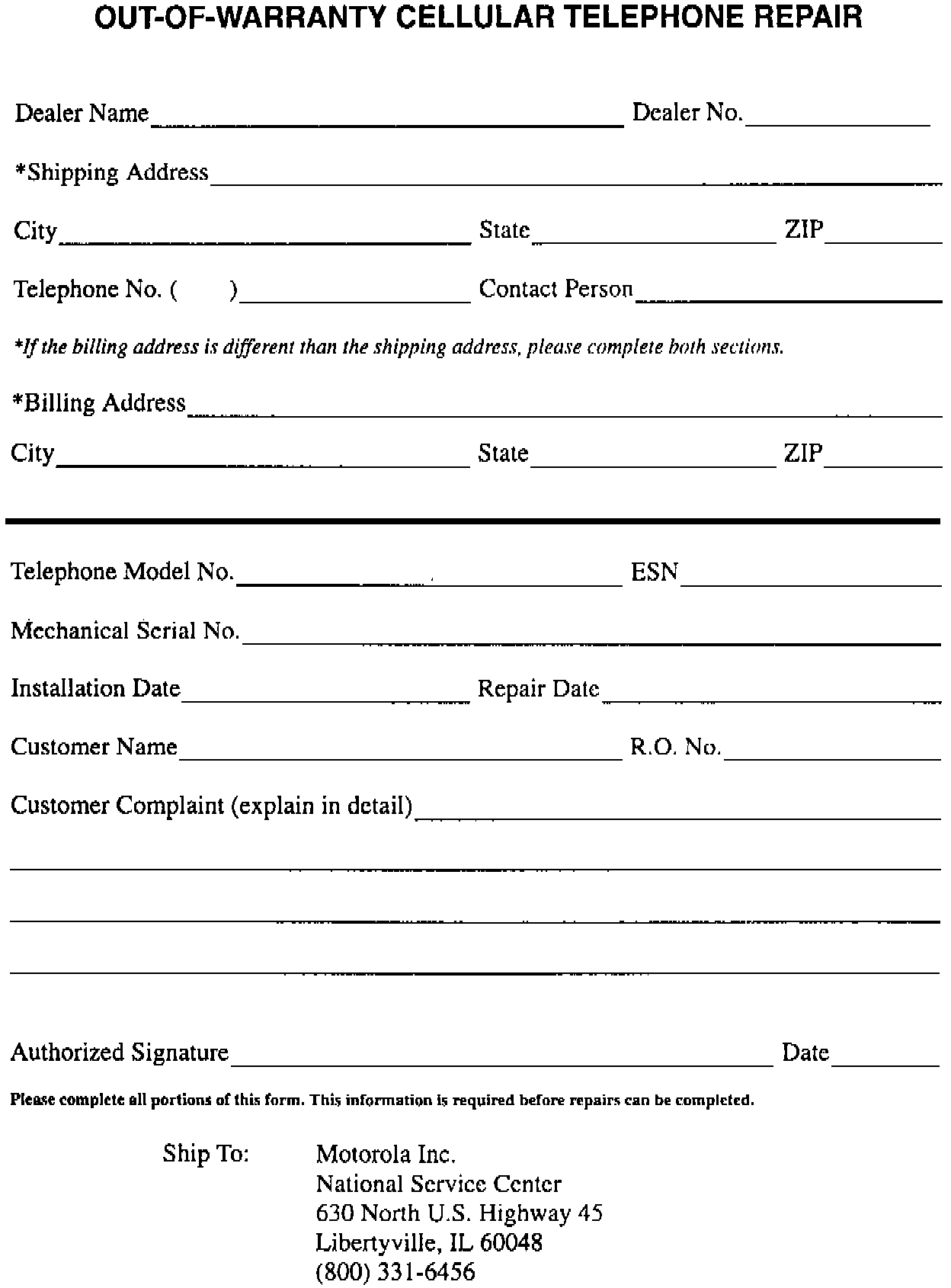 1. Complete an Out-of-Warranty Cellular Telephone Repair form (E2200) and ship it with the defective telephone component.