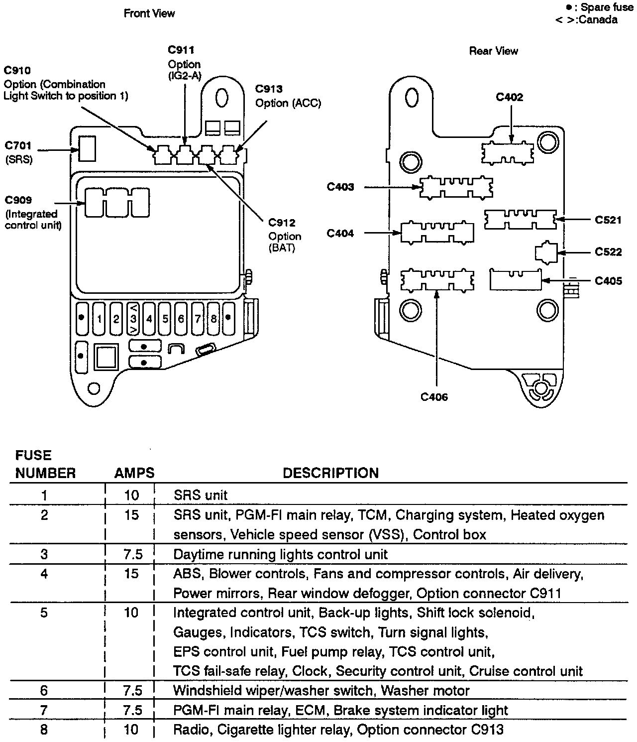Fuse/Relay Box Data