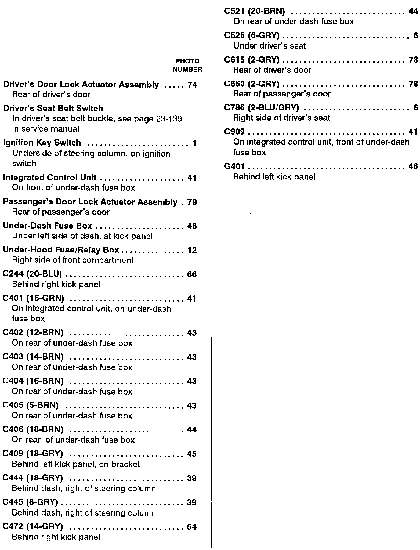 Component Location Index
