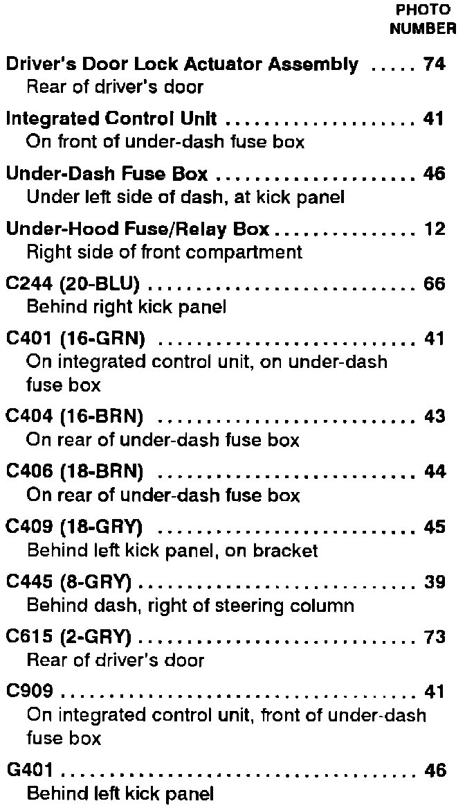 Component Location Index