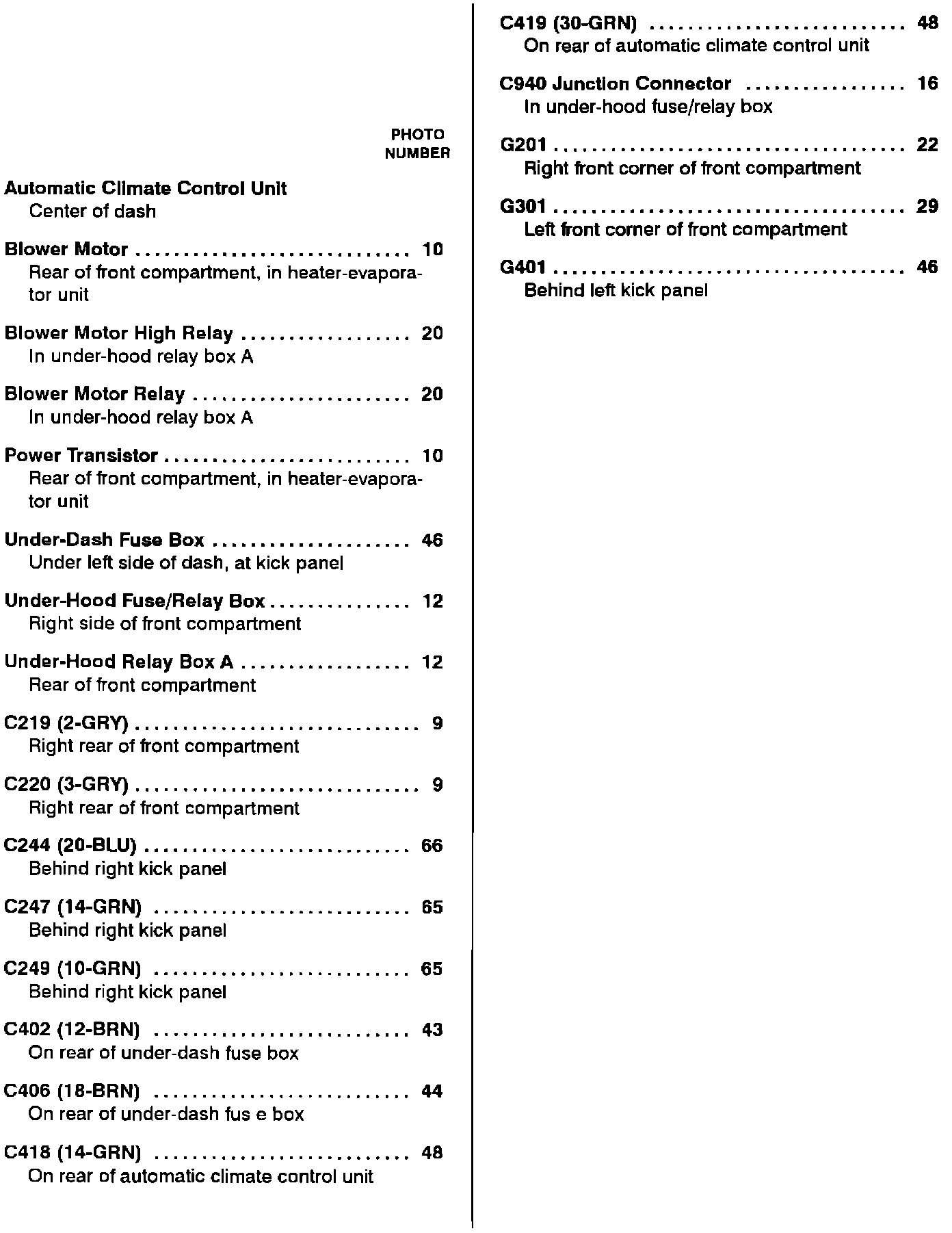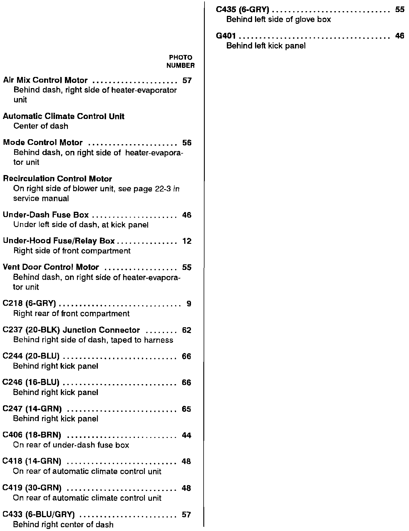 Blower Controls: Component Location Index: