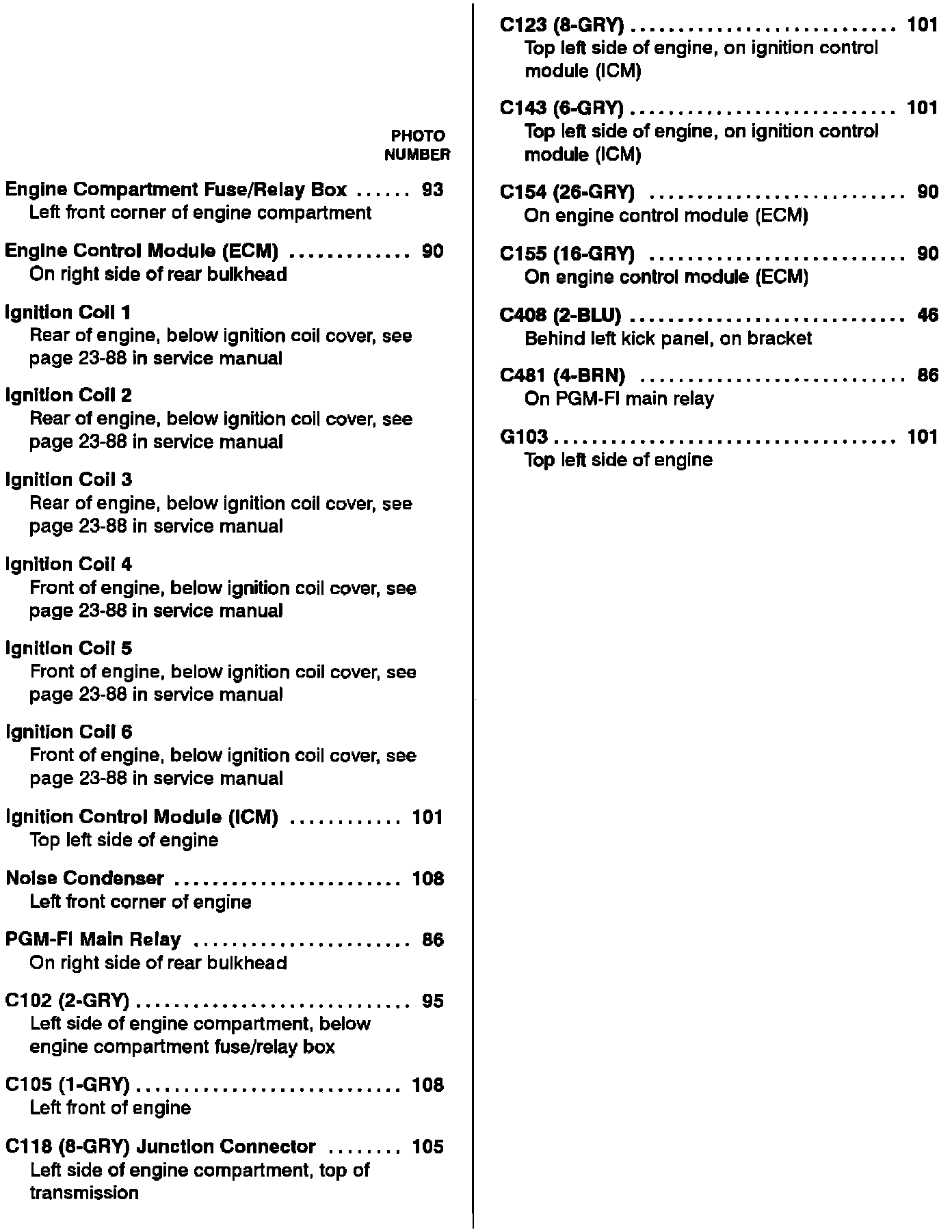 Component Location Index