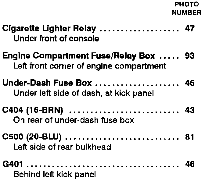 Cigarette Lighter: Component Location Index: