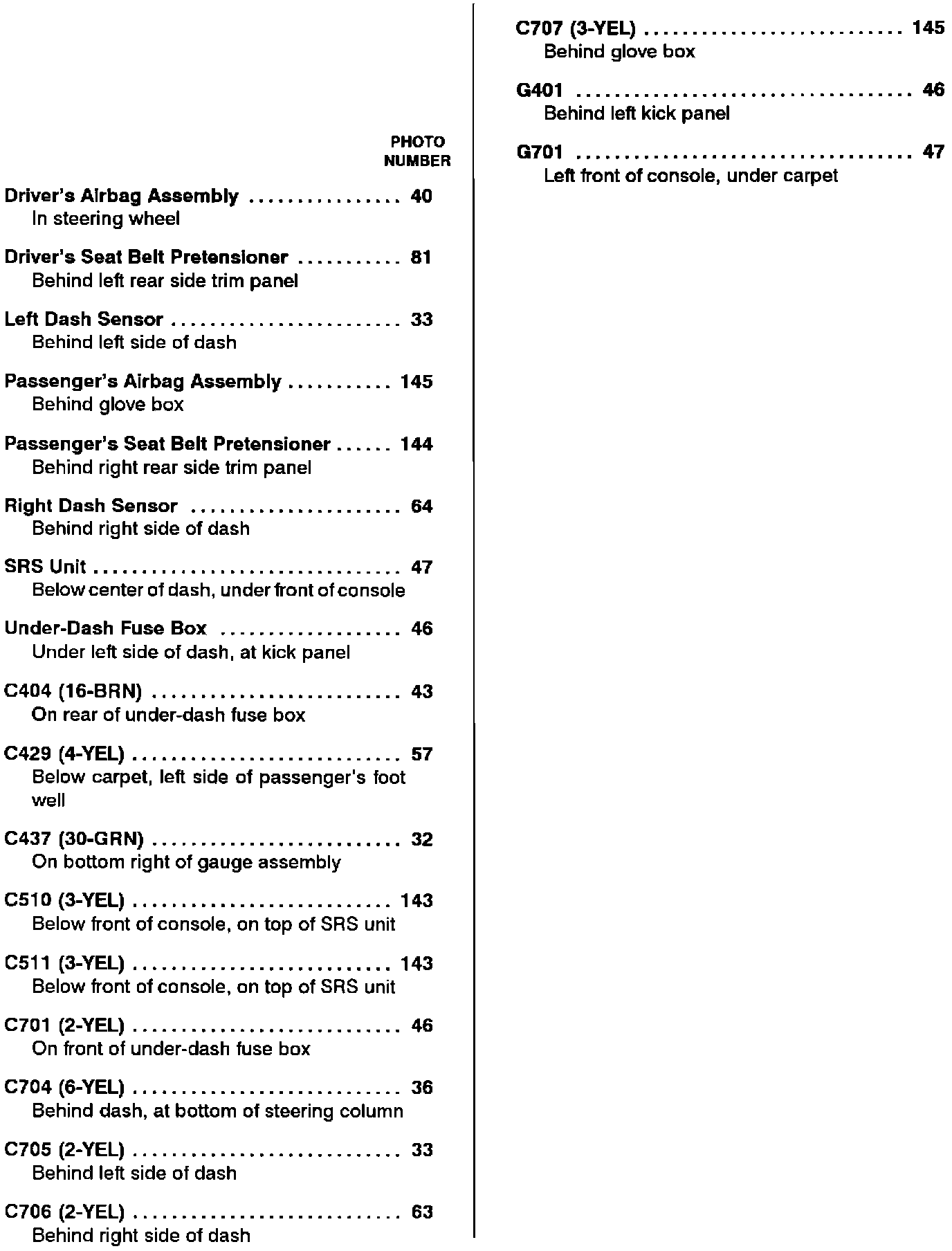 Supplemental Restraint System (SRS): Component Location Index: