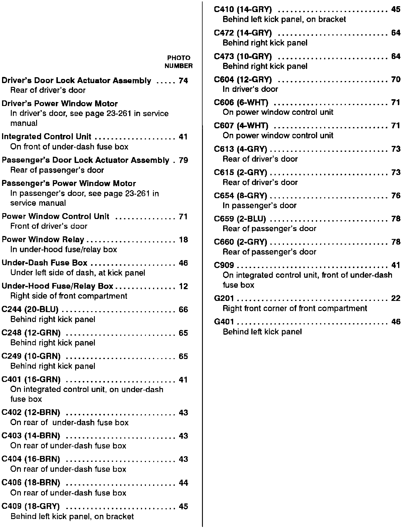 Power Windows: Component Location Index: