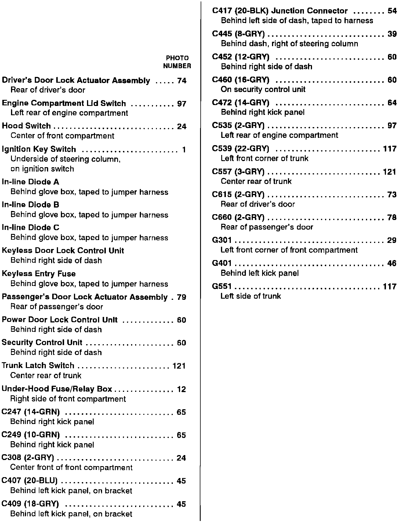 Keyless Entry: Component Location Index: