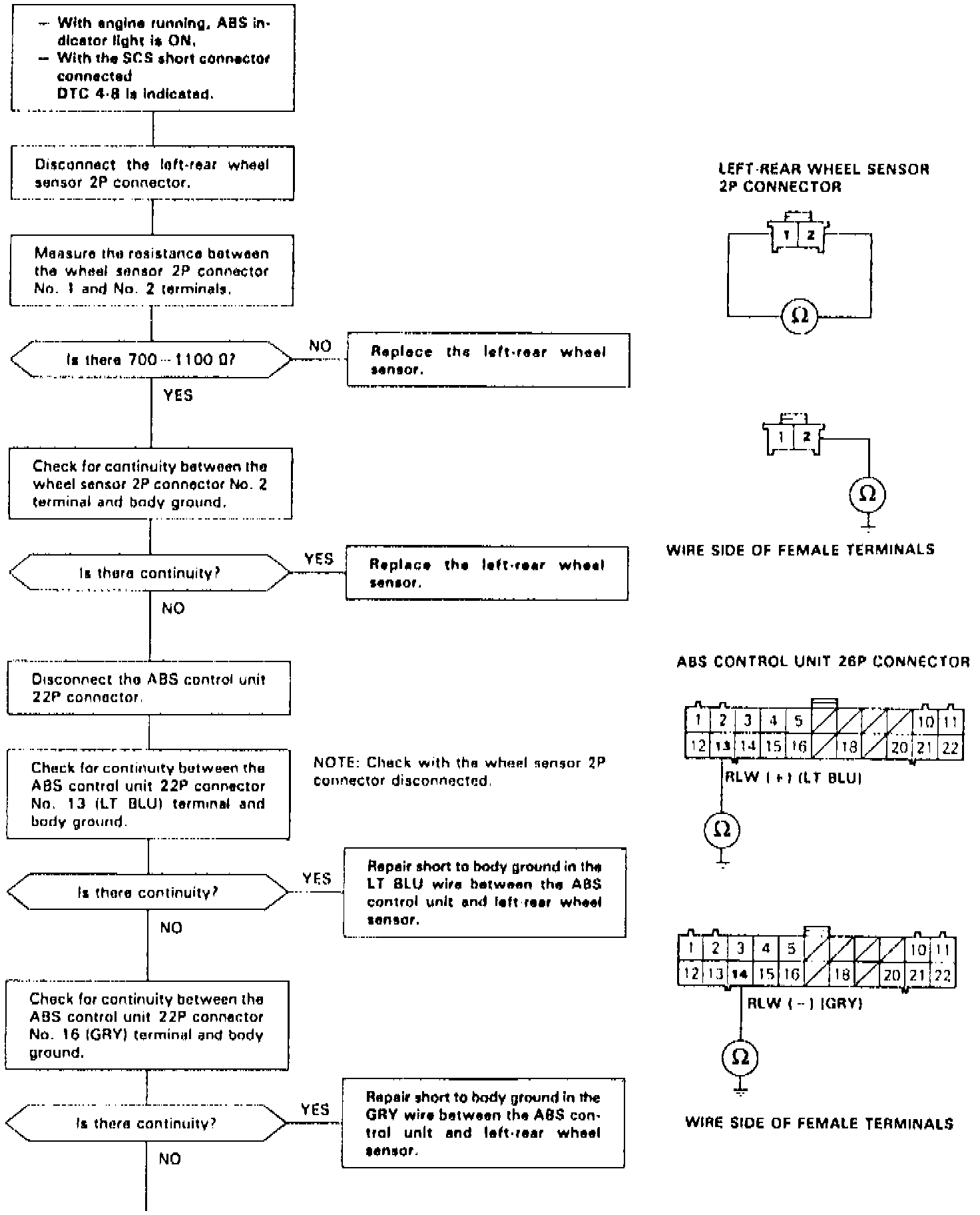 Diagnostic Trouble Code (DTC) 4-8: Left-rear Wheel Sensor Diagnosis