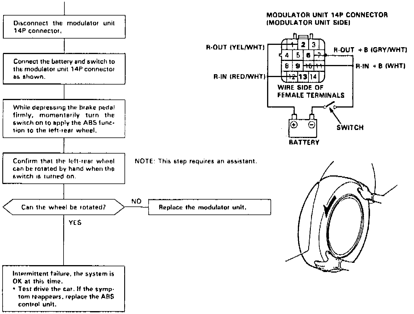 - Positive (+) wire shorted to the negative (-) wire between the left-rear wheel sensor and ABS control unit