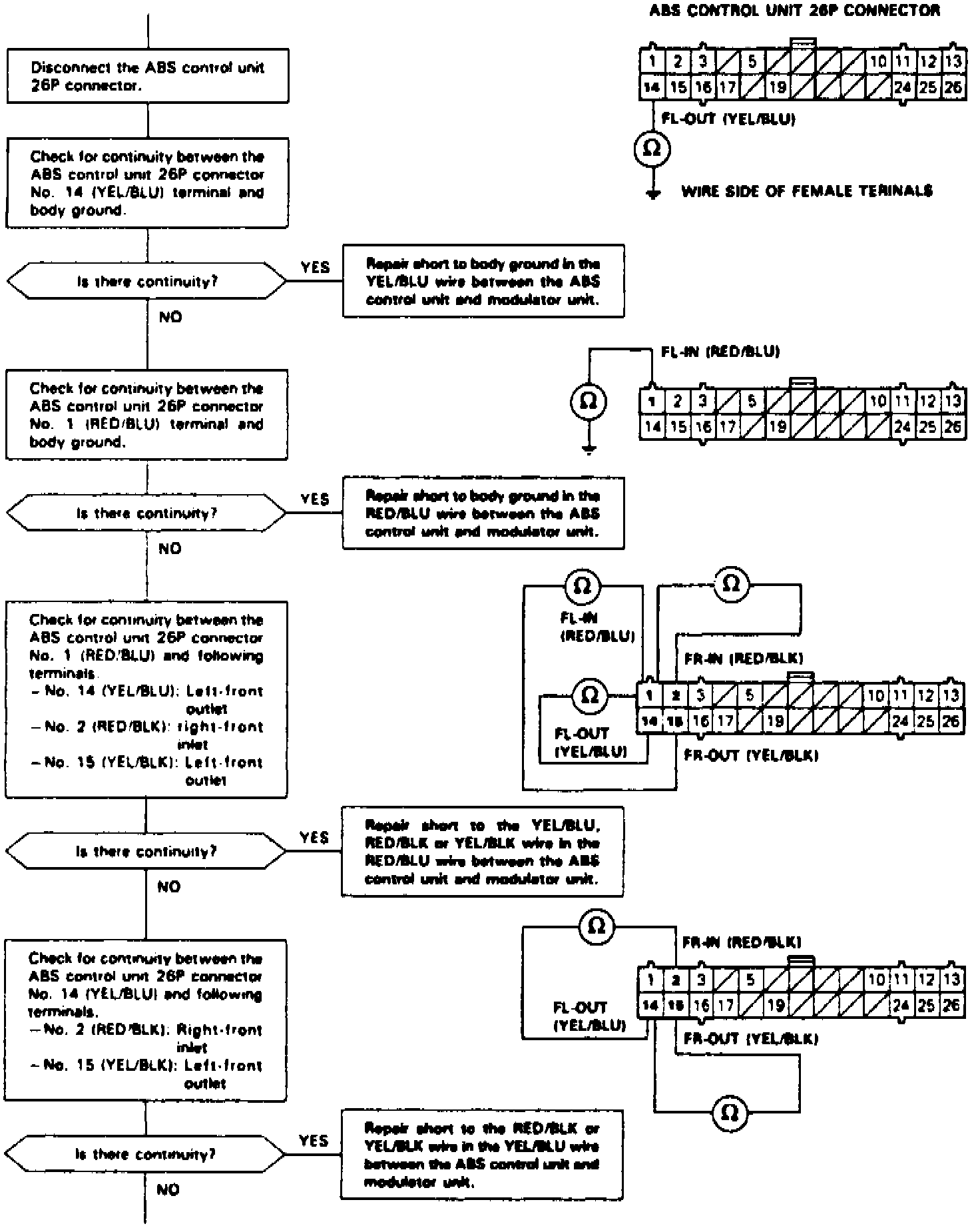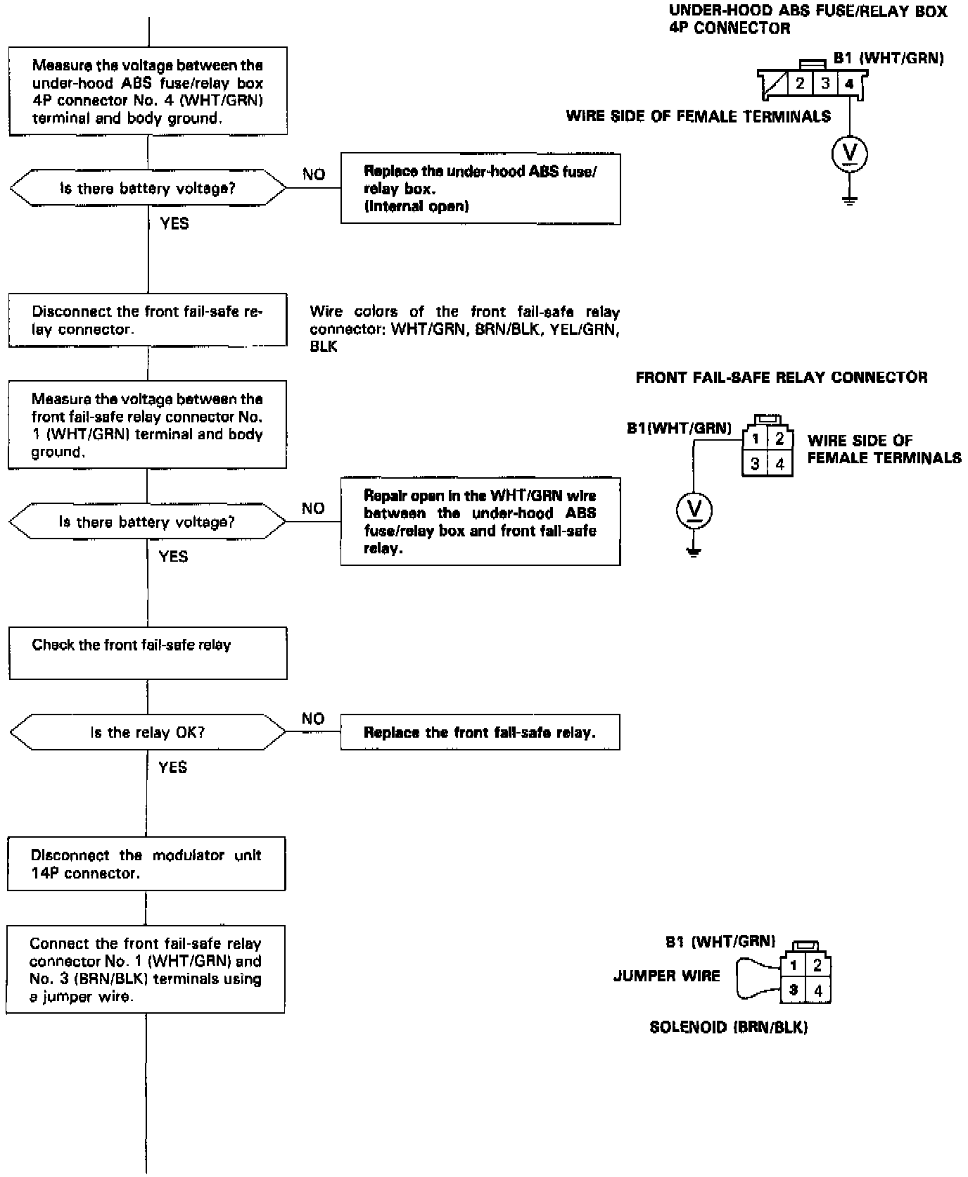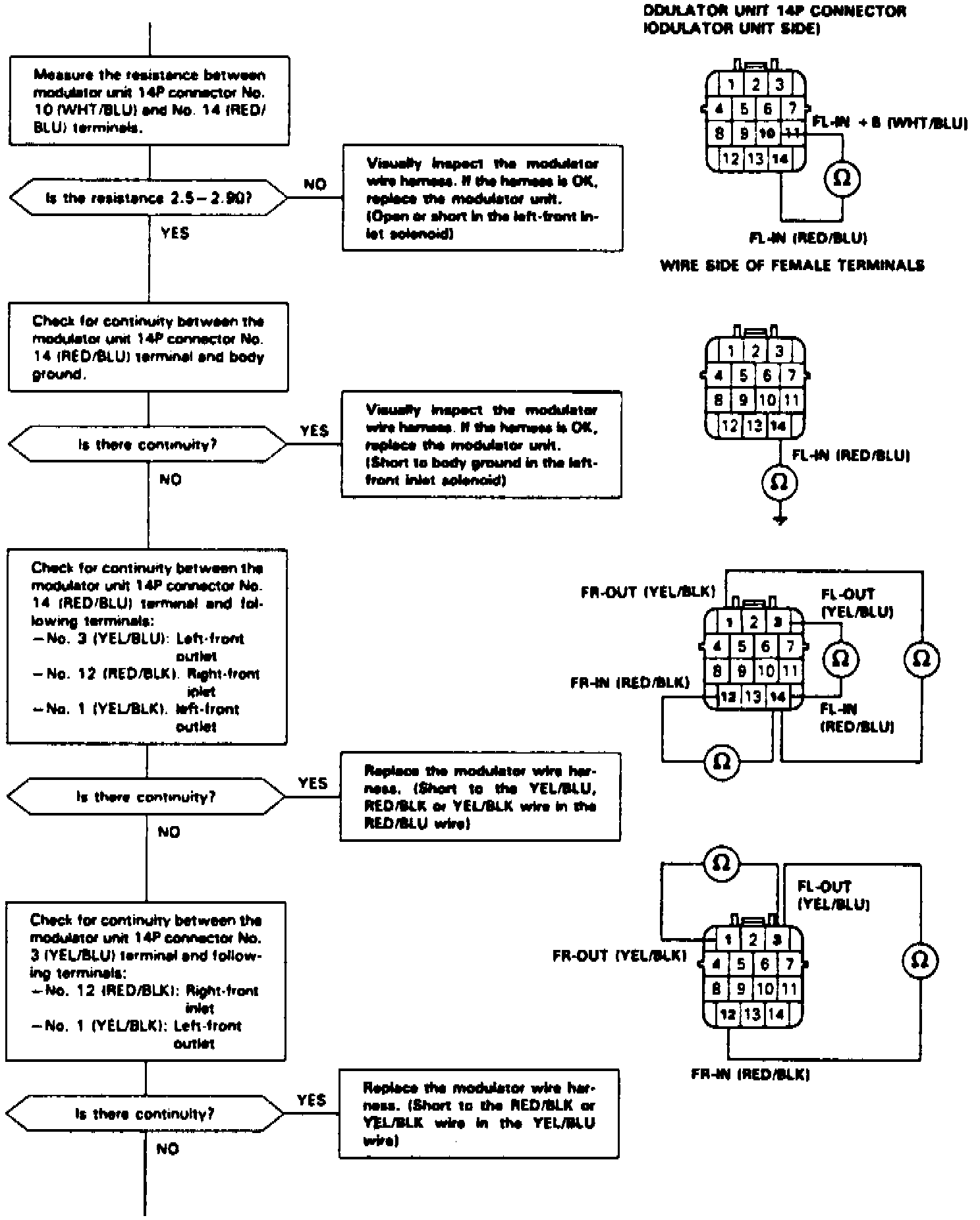 - Short circuit to the right-front solenoid inlet or outlet circuit in the left-front solenoid inlet or outlet circuit between the solenoids and ABS control unit