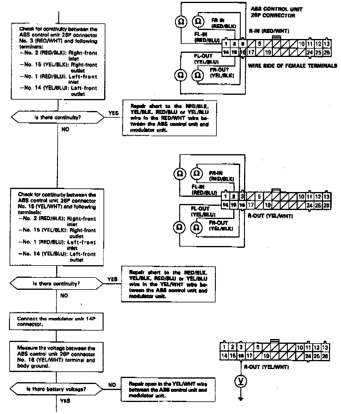 - Faulty rear solenoid drive transistor (OFF) in the ABS control unit