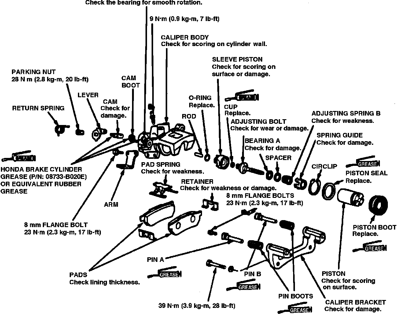 5. Clean caliper and inspect for excessive wear or damage.