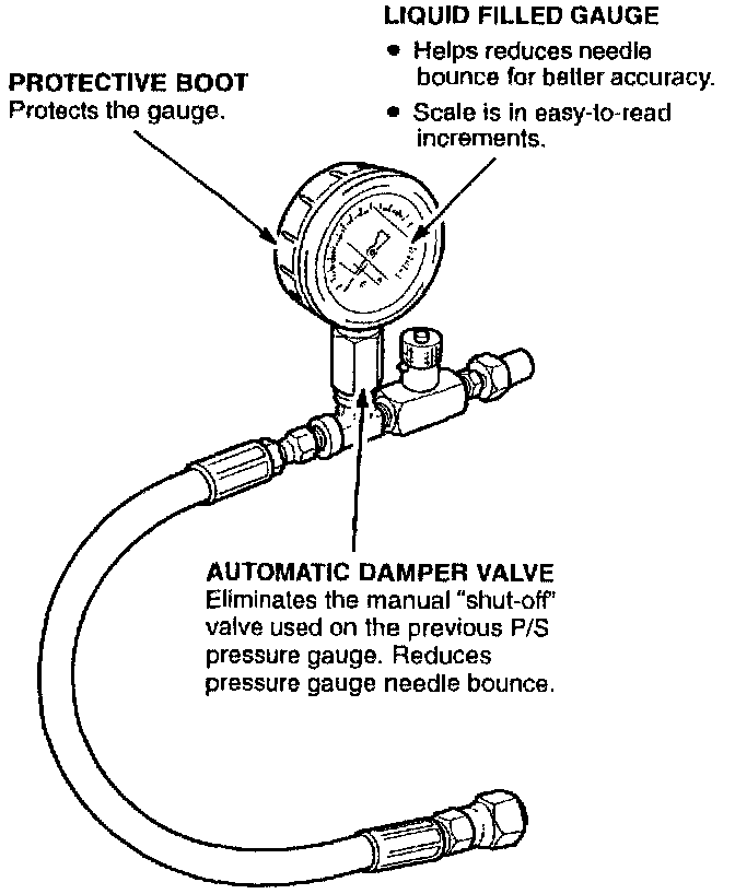 This new power steering pressure gauge has features that you will find helpful when performing power steering pump pressure tests.