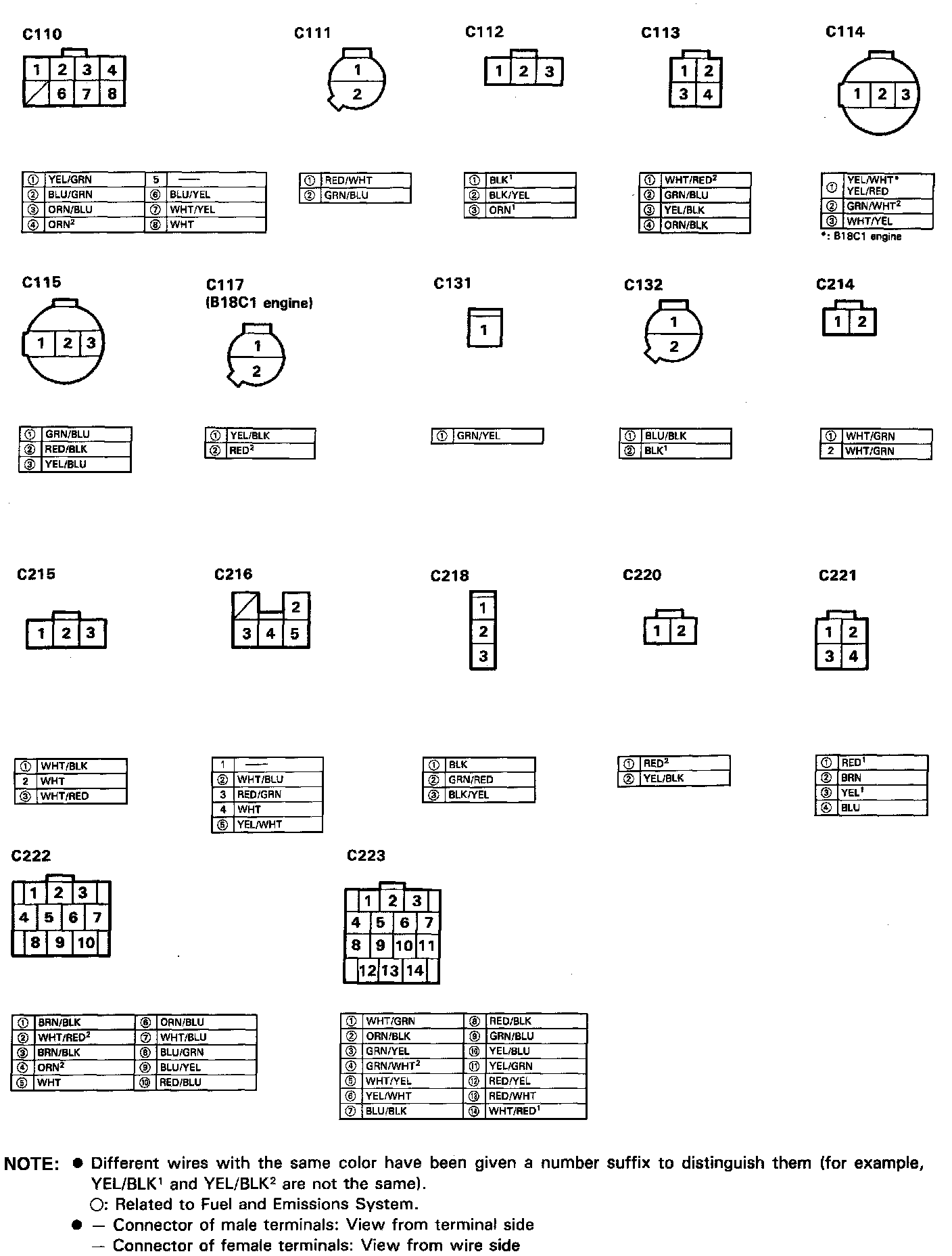 - Different wires with the same color have been given a number suffix to distinguish them (for example, YEL/BLK1 and YEL/BLK2 are not the same).
