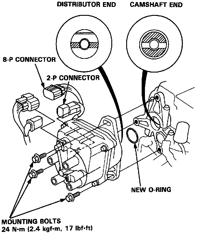 4. Connect the 2-P and 8-P connectors to the distributor.