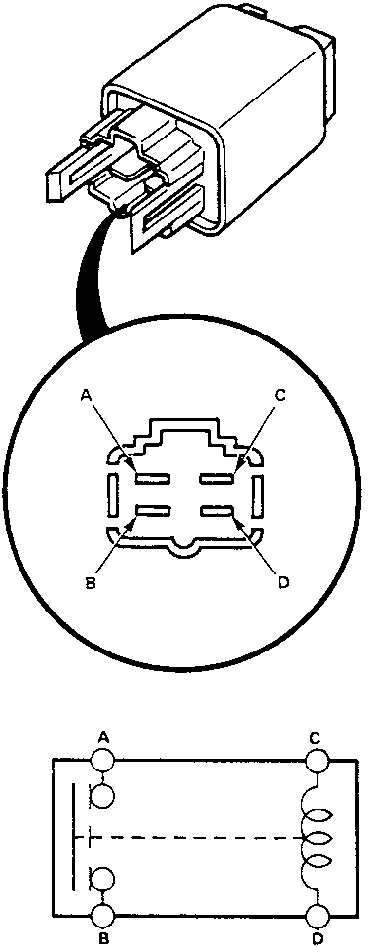 2. Check for continuity between terminals A and B when battery voltage is connected to terminals C and D, Fig. 12; continuity should be indicated.