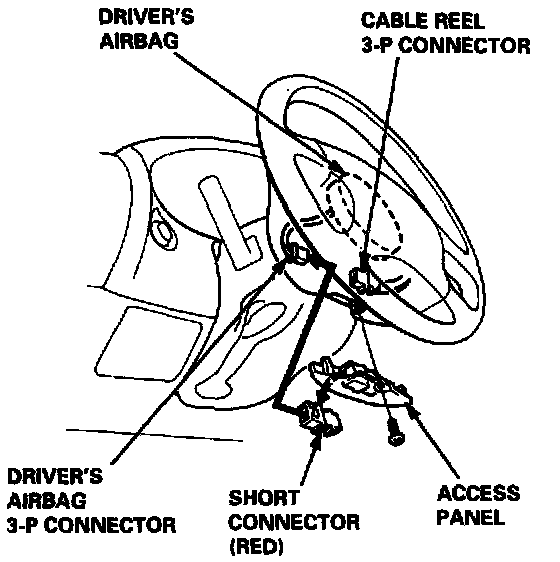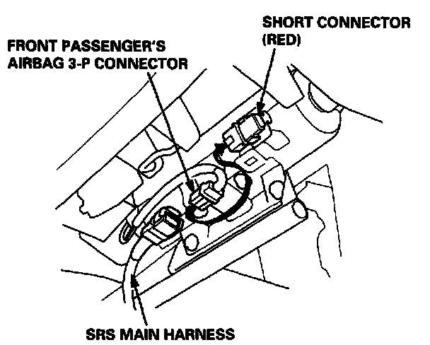 8. Remove and properly store the short connector then reconnect the airbag connector(s) (and reinstall the glove box).