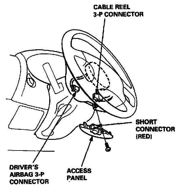 2. In all cases, make sure a short connector is properly installed on the airbag connector.