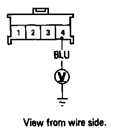 2. Turn the ignition switch ON (II) and wait for six seconds. Measure the voltage between the No.4 terminal (+) in the SRS main harness 4-P connector and body ground.