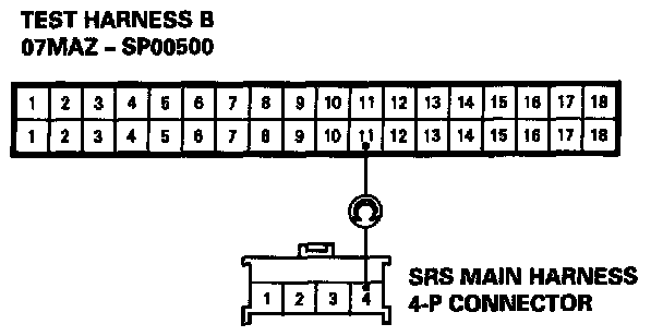 7. Check for continuity between the B11 terminal of Test Harness B and the No.4 terminal of the SRS main harness 4-P connector.