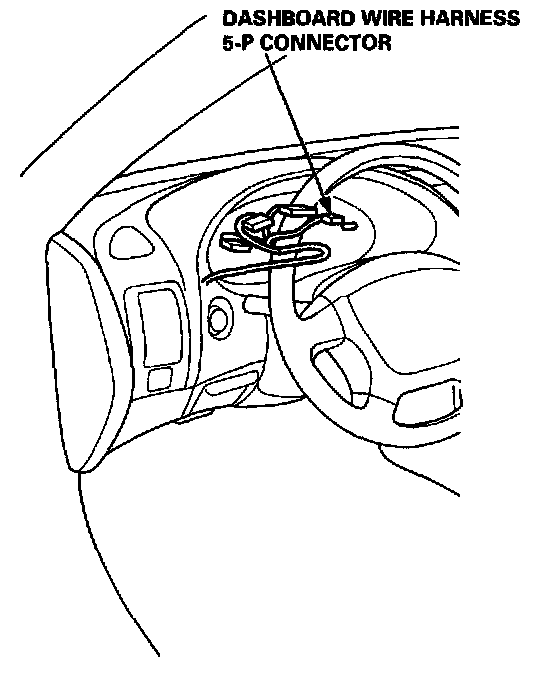 8. Reconnect the SRS main harness 4-P connector to the main wire harness. Disconnect the dashboard wire harness 5-P connector from the gauge assembly.