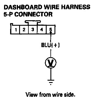 9. Turn the ignition switch ON (II) and wait for six seconds. Measure the voltage between the No.5 terminal (+) and body ground (-).