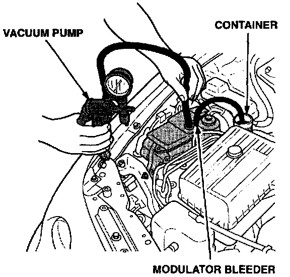 13. Fill the modulator and brake reservoirs with Genuine Honda brake fluid.