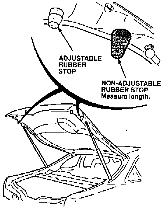 Measure the length of the non-adjustable rubber stops on the hatch. If they are 28 mm long, replace them with the 24 mm rubber stops listed under PARTS INFORMATION.