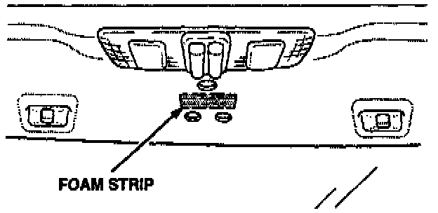 4. Place the foam strip at the center of the rearview mirror mounting area, making sure it doesn't interfere with the mirror mounting holes. When the foam strip is in the correct position, press the adhesive covered side of it to the roof.