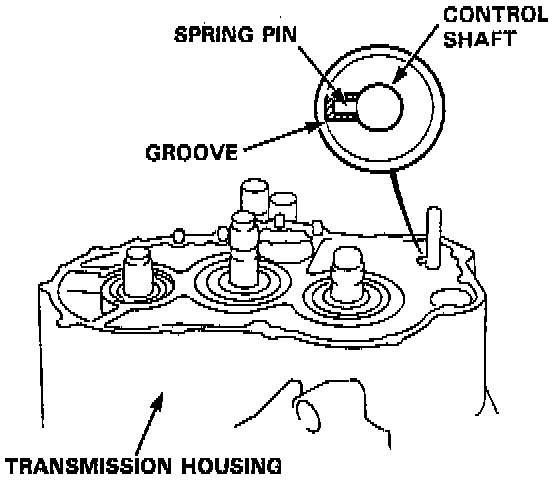 24. Align the spring pin of the control shaft with the transmission housing groove by turning the control shaft.