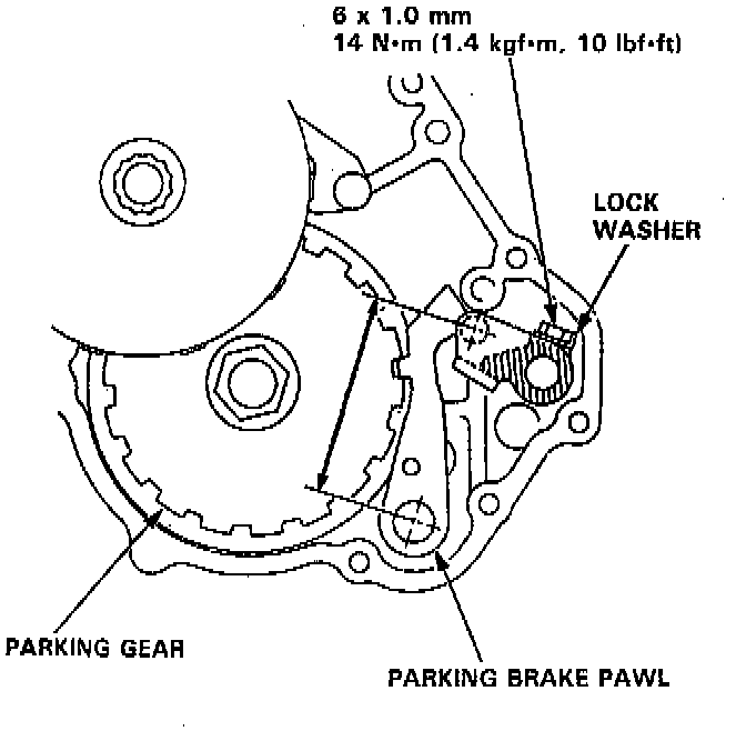41. Set the parking brake lever in the P position, then verify that the parking brake pawl engages the parking gear.