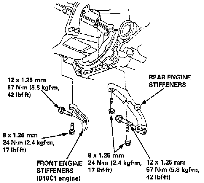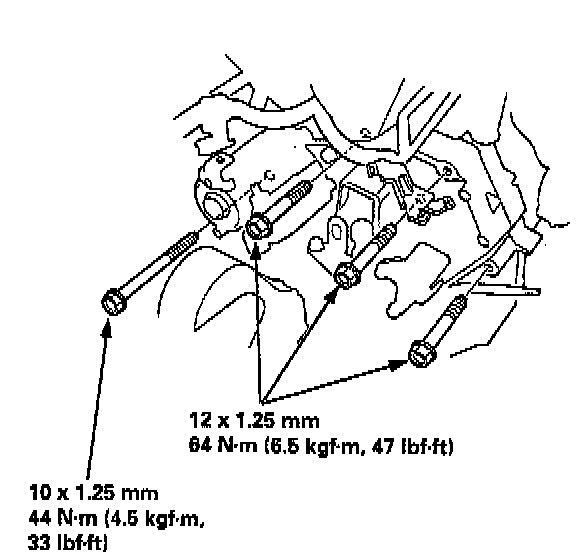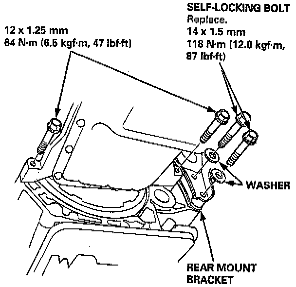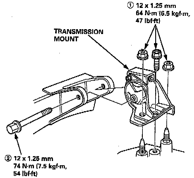 5. install the transmission mounting bolts and the rear mount bracket bolts.