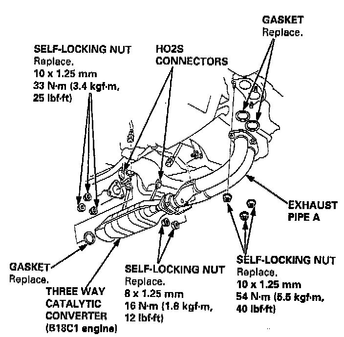 16. Install the exhaust pipe A and connect the Heated Oxygen Sensor (H02S) connectors.
