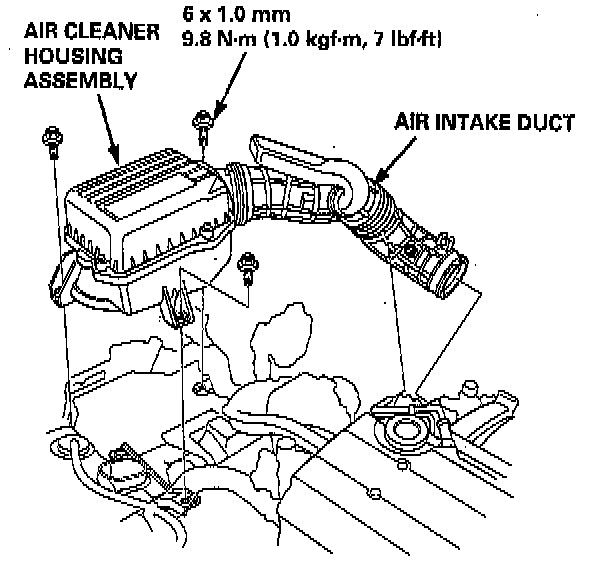 7. Install the three upper transmission mounting bolts and the lower starter motor mounting bolt.