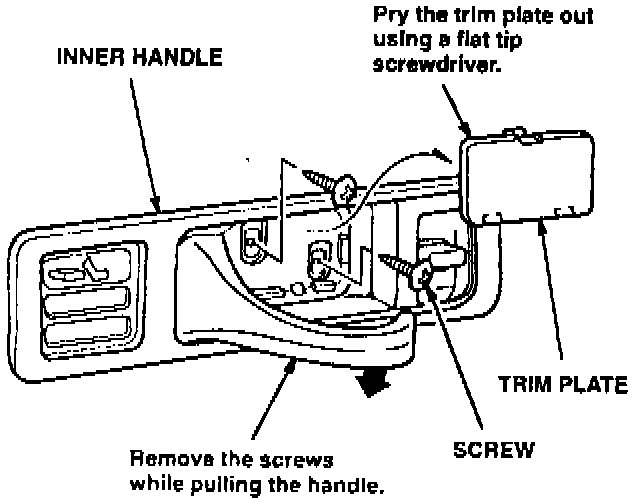 1. Remove the trim plate and screws from the inner door handle.