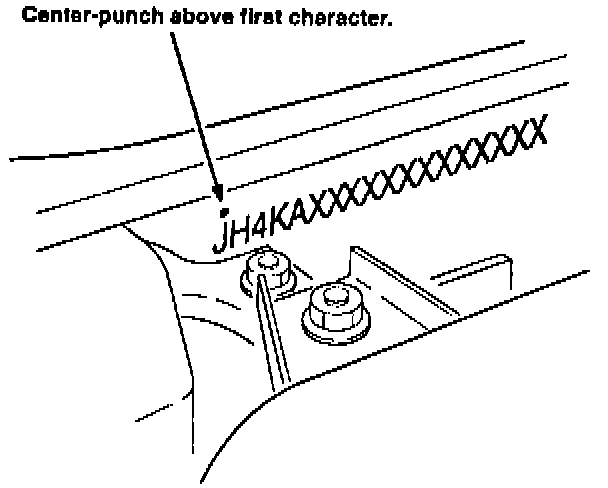 12. Center-punch a completion mark above the first character of the engine compartment VIN.