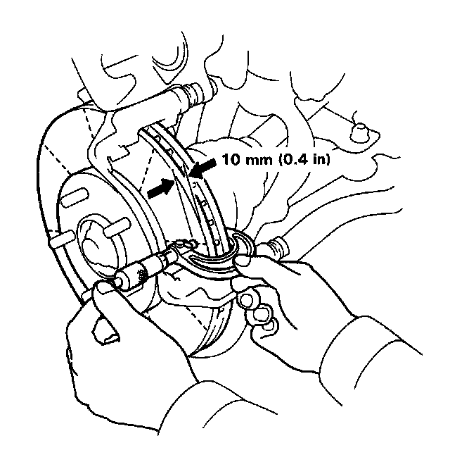 3. Using a micrometer, measure disc thickness at eight points, approximately 45° apart and 10 mm (0.4 in) in from the outer edge of the disc.