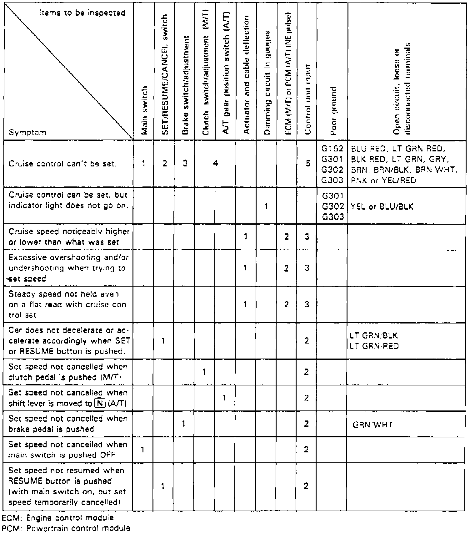 when troubleshooting speed control system. The numbers in chart grid indicate troubleshooting sequence.