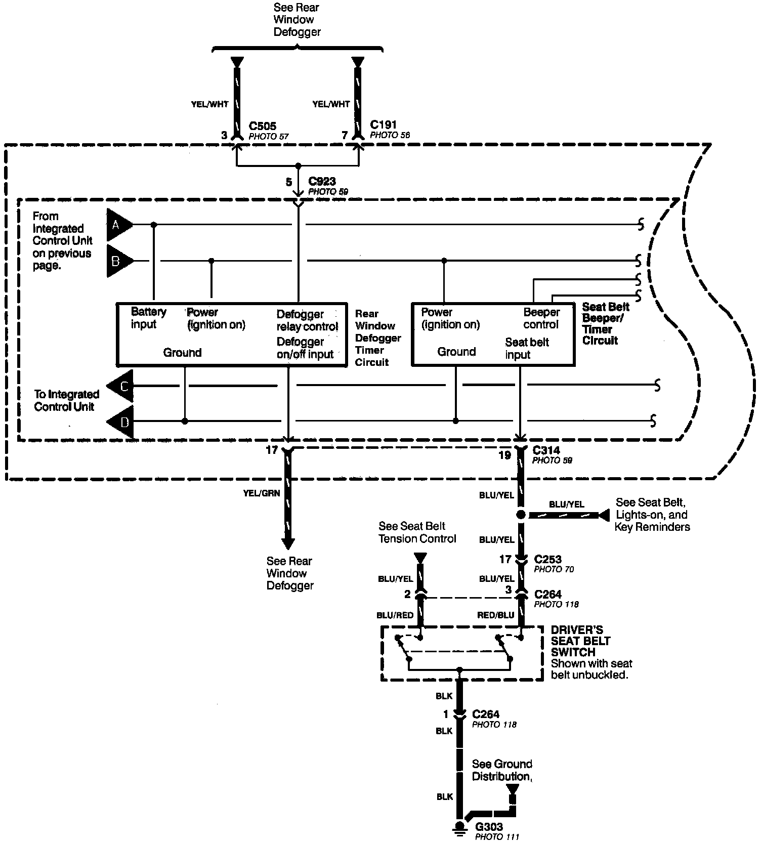Integrated Control Unit- Rear Window Defogger And Seat Belt Beeper Timer Circuit: