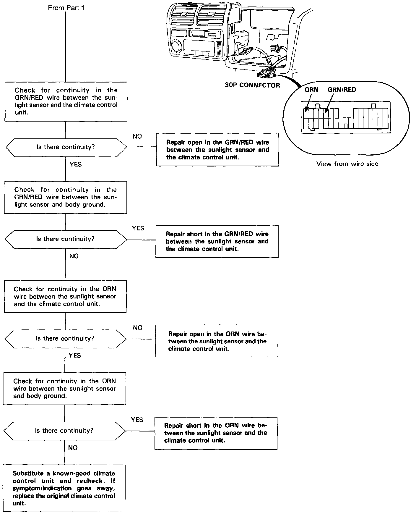 SUNLIGHT SENSORThe sunlight sensor is a light sensitive, variable resistance diode. The resistance of the diode increases as the intensity of the light increases. Use a digital multimeter (KS-AHM-32-003) to check it.