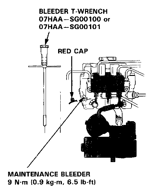 5. Bleed high-pressure fluid from the maintenance bleeder with the special tool.