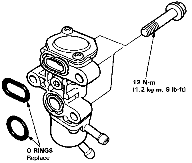 Remove the two hoses and three bolts. Replace O-rings. When installing the