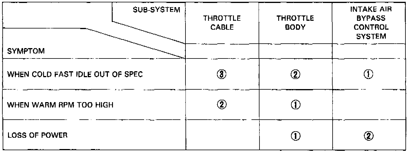- Across each row in the chart, the sub-systems that could be sources of a symptom are ranked in the order they should be inspected starting with (1). Find the symptom in the left column, read across to the most likely source, then refer to the page listed at the top of that column. If inspection shows the system is OK, try the next system (2), etc.