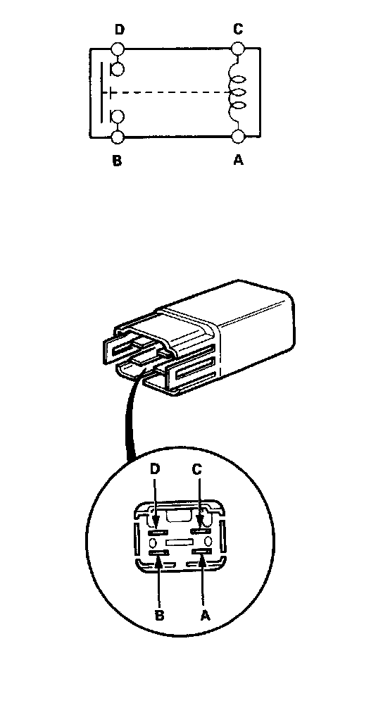 3. There should be continuity between the D and B terminals when power and ground are connected to the C and A terminals. There should be no continuity when power is disconnected.