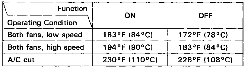- Additionally, the temperature switch shuts down the A/C system if the engine coolant temperature exceeds 230°F (110°C). If the pressure in the A/C system is higher than normal, pressure switch A opens and the fans run at high speed only. See the Heating and Air Conditioning for a description of that function.