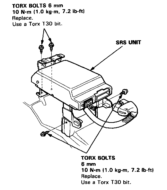 4. Remove the four SRS unit Torx bolts, then remove the SRS unit.