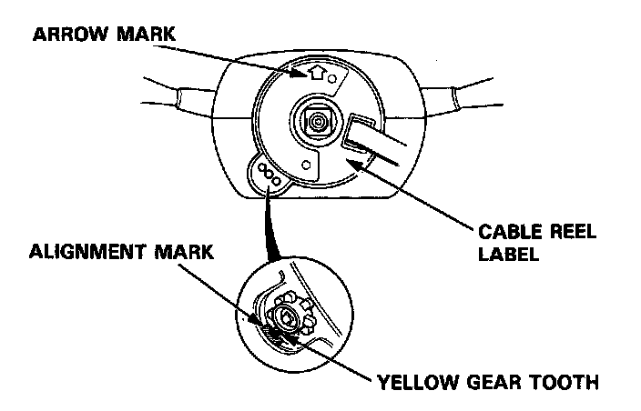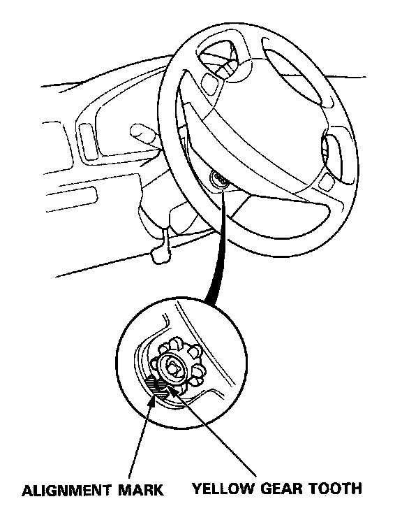 - Rotate the steering wheel counterclockwise to make sure the yellow gear tooth lines up with the alignment mark on the cover.
