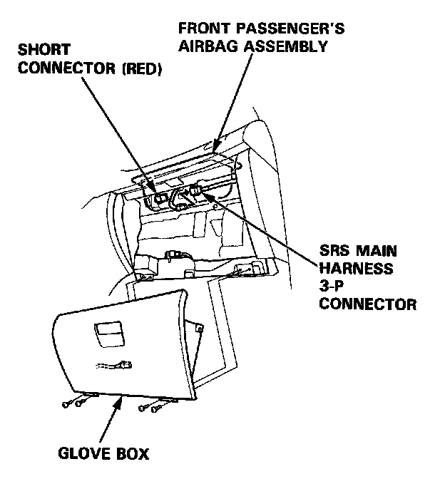 21. Remove the short connectors from the front passenger's airbag connector and from the SRS main harness connector.