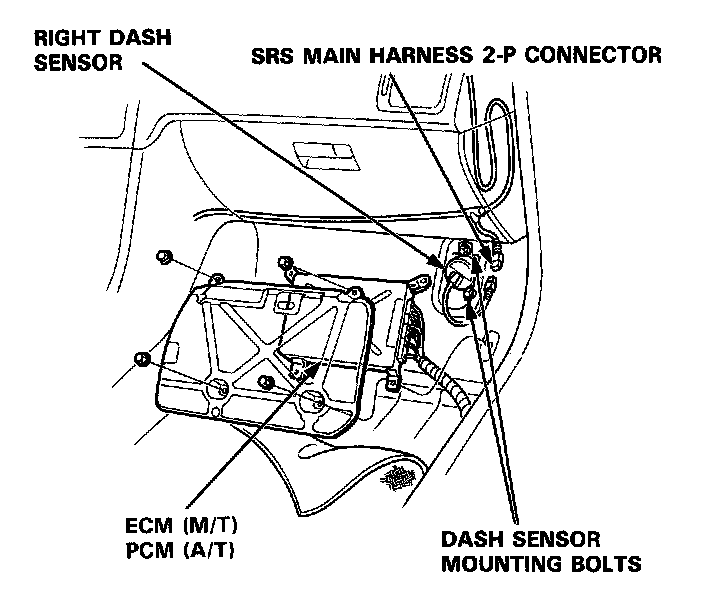 Remove the right door sill molding and pull back the carpeting. Remove the ECM (M/T) or PCM (A/T).