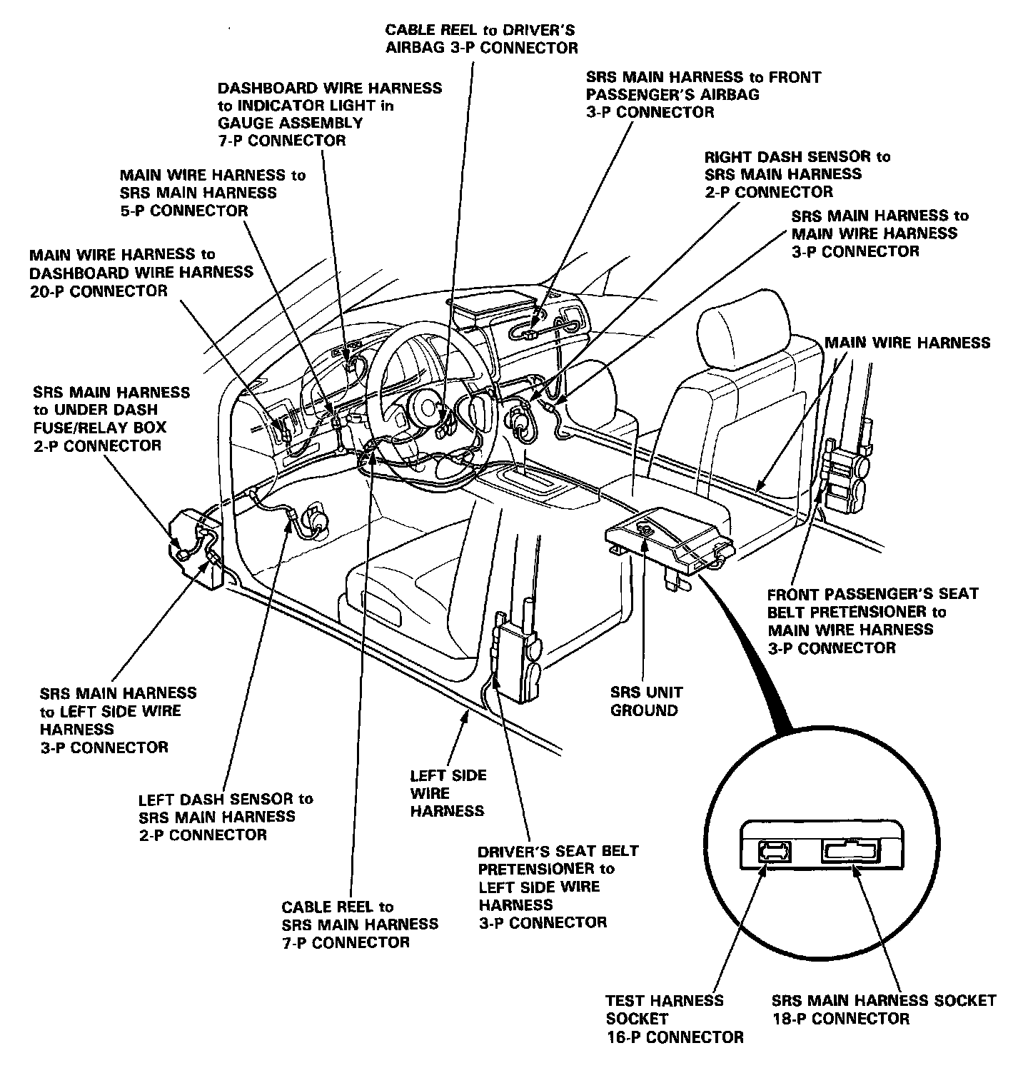 - Replace the entire affected SRS harness assembly if it has an open circuit or damaged wiring
